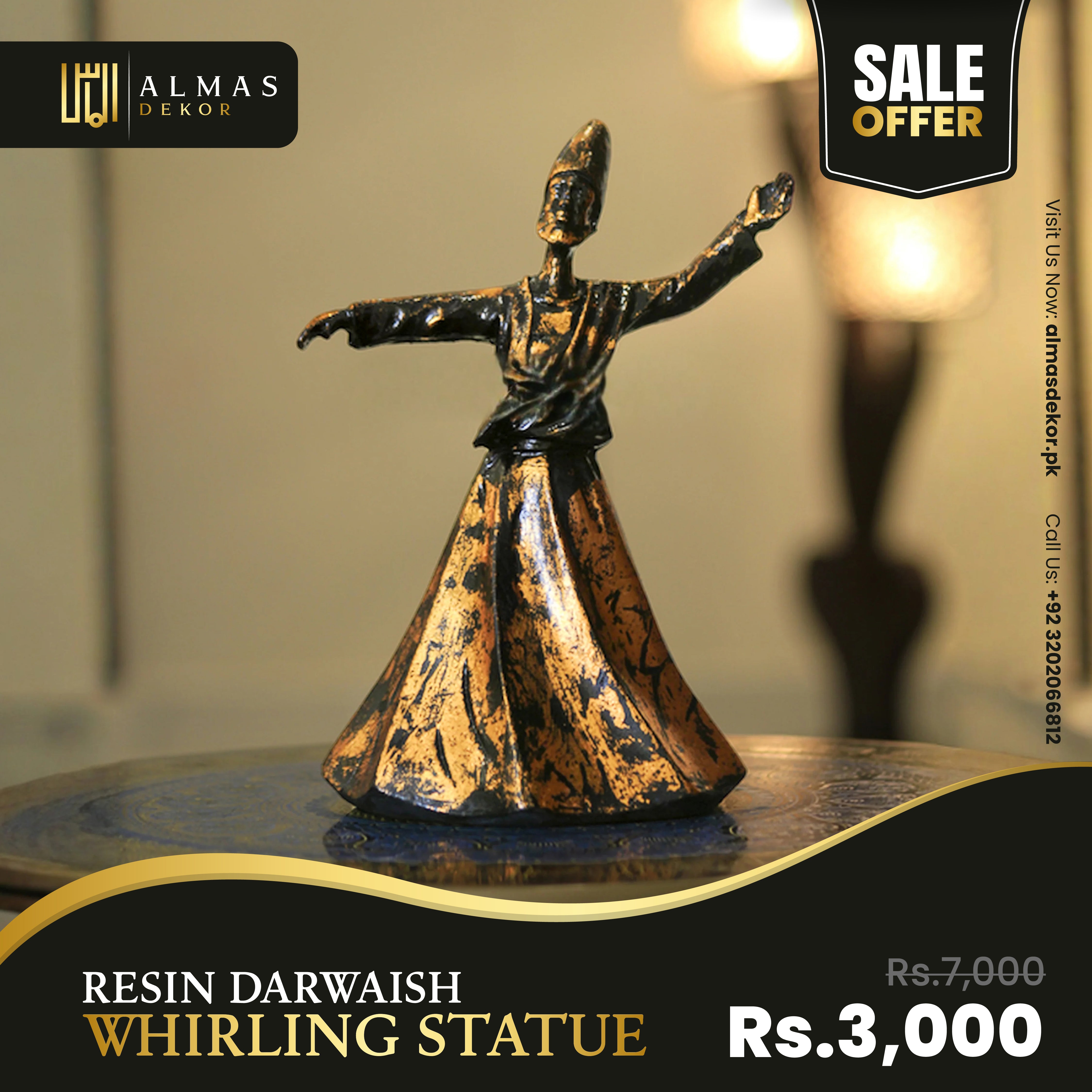 Embrace the beauty of movement and spiritual expression with this elegant Resin Whirling Dervish Statue. Inspired by the sacred Sufi dance of devotion, this figurine captures the serenity and rhythm of the dervish in mid-whirl, bringing a sense of peace, culture, and mysticism to your space.
